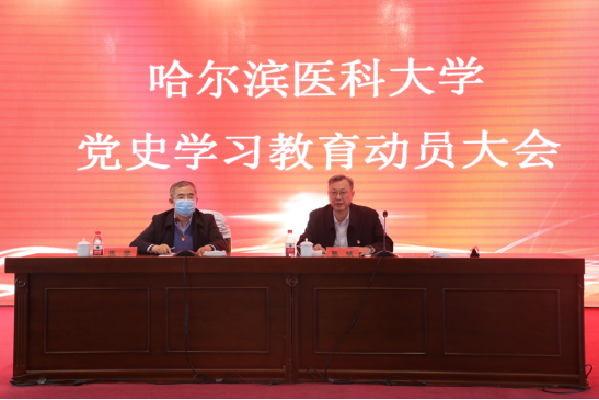 张斌指出,党史学习教育意义重大。党历来十分重视党史学习教育,重视用党的奋斗历程和伟大成就鼓舞斗志、明确方向;用党的光荣传统和优良作风坚定信念、凝聚力量;用党的实践创造和历史经验启迪智慧、砥砺品格。站在“两个一百年”历史交汇点上,全面实施“十四五”规划、推进全面振兴全方位振兴、建设现代化新龙江,建设百年医学强校,更加需要从党的百年奋斗史中汲取精神力量。哈尔滨医科大学作为有着红色基因的传统老校,抓好党史学习教育,是学校传承红色基因,践行育人使命,凝心聚力把握新发展阶段、贯彻新发展理念、构建新发展格局,推动学校各项事业高质量发展的内在要求;是学校全面加强党的领导,履行管党治党责任、坚定不移推进全面从严治党,推动高质量党建的内在要求。