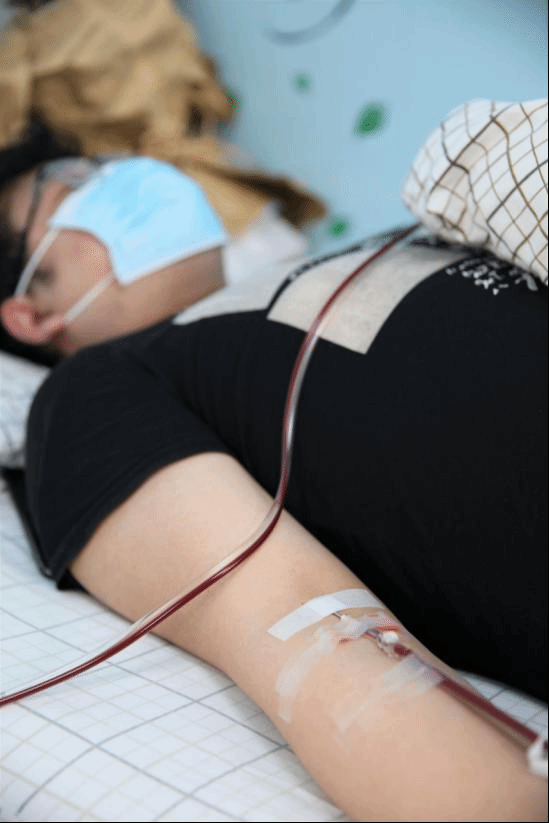 4月15日上午,在哈医大一院血液肿瘤中心造血干细胞移植病房内,刘思远在造血干细胞移植病房主任范圣瑾和工作人员的陪伴下,经过3个多小时、40多次的循环采血,从他7000ml全血中收集了200ml含有足够受者进行骨髓移植活的干细胞悬液。成为哈尔滨医科大学第2位成功捐献造血干细胞的在校学生,黑龙江省第123例成功捐献造血干细胞的捐献者。
