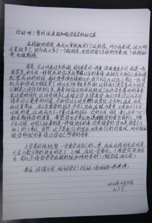 这是一封从哈医大一院血液肿瘤中心造血干细胞移植病房发往远方的信,随信寄出的还有一份含有用于骨髓移植干细胞的200ml悬液,它们都出自哈尔滨医科大学2020级研究生党员刘思远(化名)。