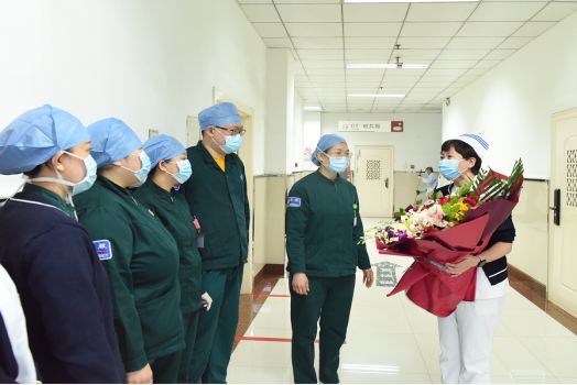 附属二院护理部主任吕冬梅为临床护士献花