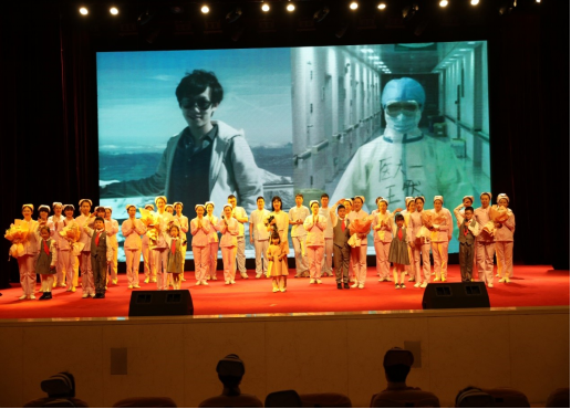 附属一院诗歌演讲会现场护士子女为父母献花