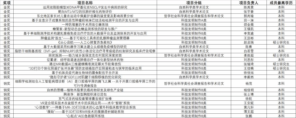 附:竞赛获奖项目名单