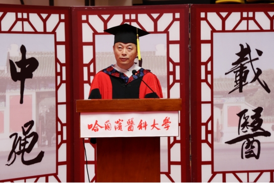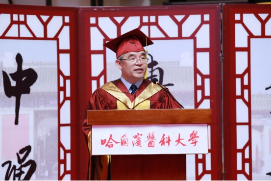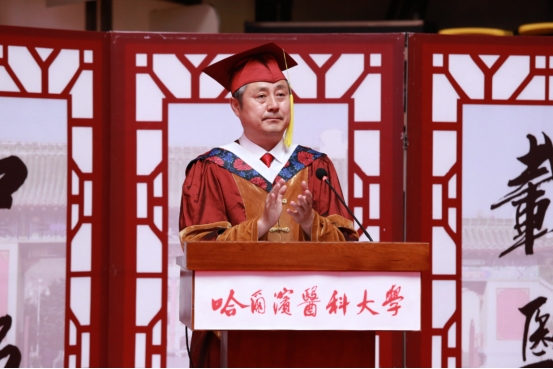 张学感慨的对同学们讲,在哈医大求学的这几年里,同学们筑梦于心、逐梦前行,收获了知识和能力,经历了磨练和考验,结下了深厚的师生情谊,留下了许多难忘回忆。