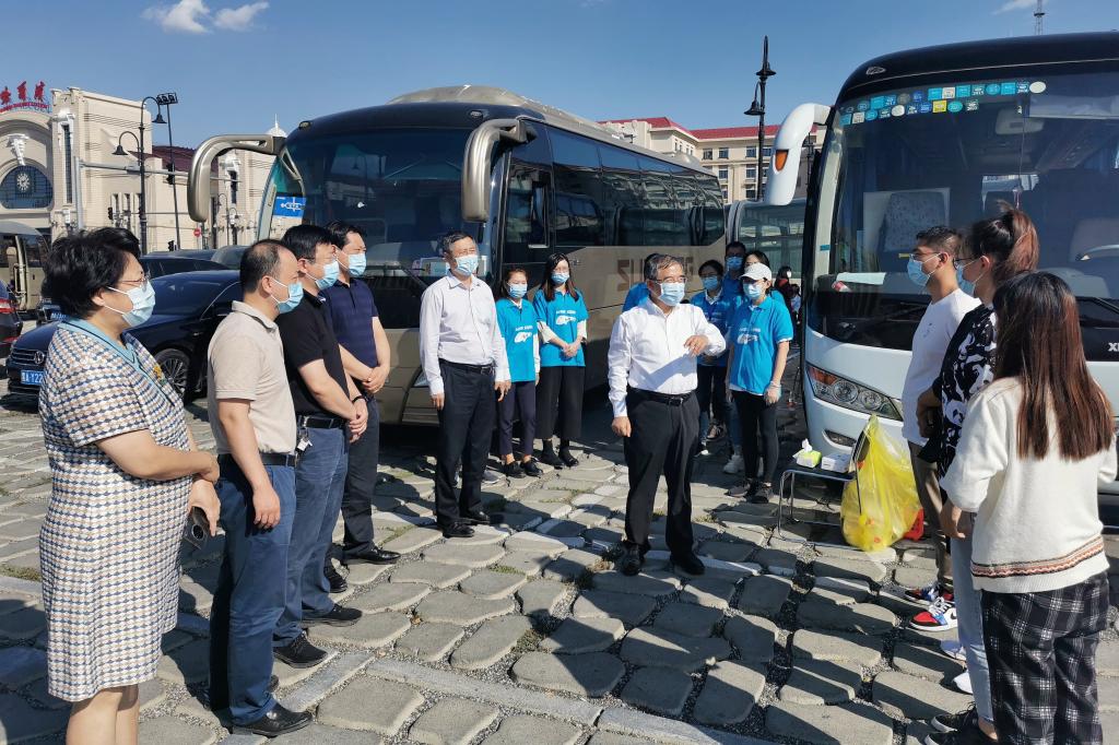 下午,张学先后来到哈西客站、哈尔滨火车站,迎接首批到校学生。张学关心的询问学生们家在哪里?是否路途劳顿?他暖心的表示,从下车开始,学生们回校、进校的全程都由学校负责,确保大家安全、安心到校,有任何困难可以跟老师讲,学校将尽全力为大家排忧解难,欢迎新生加入哈医大这个大家庭,欢迎老生回家!张学还慰问了现场的志愿者们,感谢他们的辛苦付出,正因为有这些志愿者,才能让到校的路程顺畅无阻、安全贴心,也让学生们第一时间感受到学校的关心和爱护。