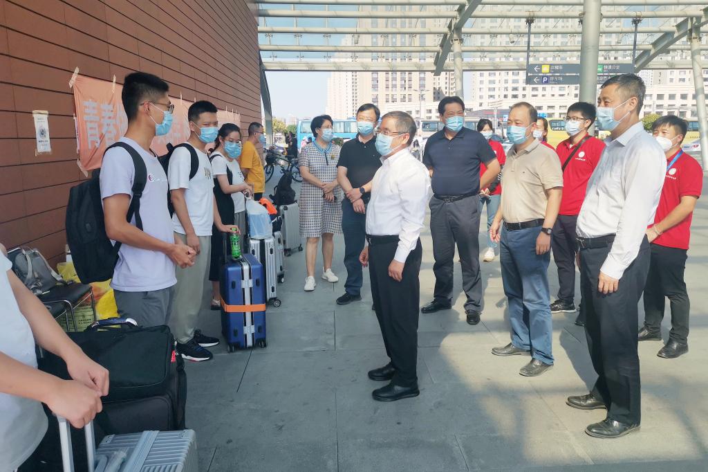 9月1日,学校迎来首批返校学生。为进一步督促工作,确保开学安全有序,学校党委书记张斌、校长张学实地踏查校园,为学生到校“打前站”,关注“三道关”。校领导分赴各火车站、附属医院,迎接首批到校学生,让他们一下车就感受到“到家”的温暖。
