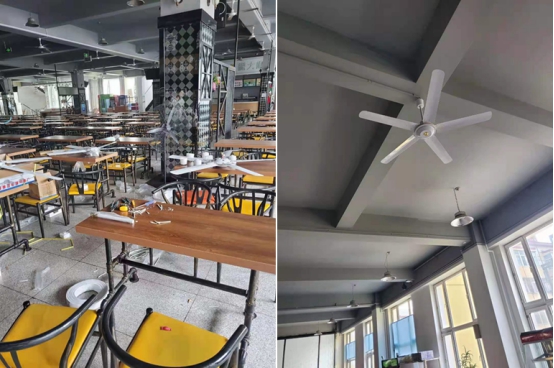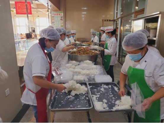 后勤人一直都在。饮食服务中心一层清真档口及二层基本大伙为暑期留校师生提供就餐服务,安装棚顶吊扇,忙碌在操作间、售卖区,严把食品安全,确保暑期工作日中餐供应,保障开学配送隔离餐。设备检修、盘点清查,为开学开餐做好全面准备。