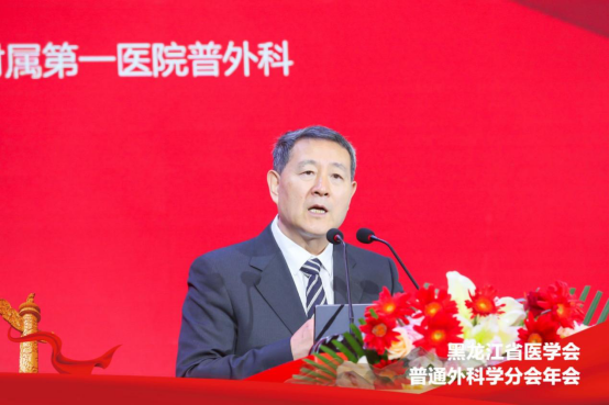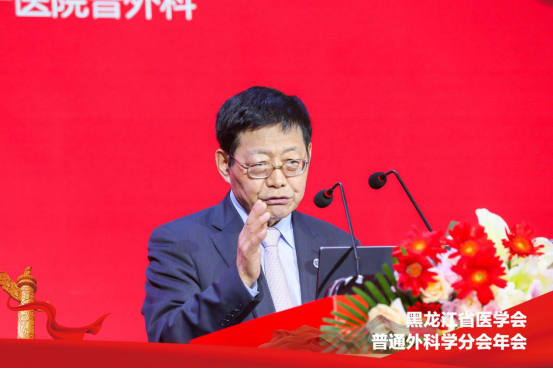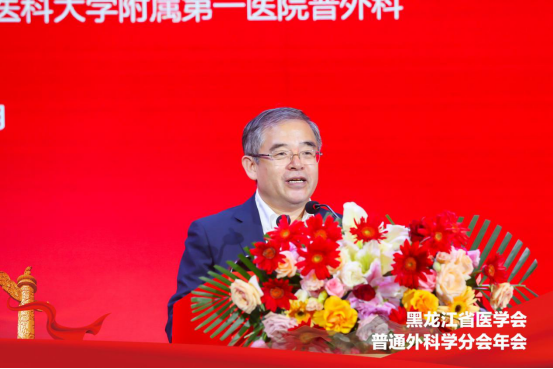 8时30分,大会正式进入主旨发言环节。普外科及相关领域著名学者杨宝峰院士、姜洪池教授、尹梅教授、孙备教授、吴德全教授、许军教授、金政锡教授、朴大勋教授、崔云甫教授、梁德森教授、迟强教授等在大会上做了主题发言或精彩点评。杨宝峰院士做了题为《抗肿瘤药物研究与启示》的报告,从抗肿瘤药物的困境、现状及发展趋势等方面做了提纲挈领式的发言,深入浅出,发人深省。大会名誉主席姜洪池教授做了题为《外科领域高科技的双刃剑作用引发的思考》的报告,就当下各种高新技术在外科领域中如何应用、何时应用做了深入细致的点评,其包含哲学思辨的讲评引发了同道共鸣。哈尔滨医科大学人文社科学院院长尹梅教授做了题为《医生也需要人文关怀》的报告,从独特的视角讲述了医生需要怎样的人文关怀,她的发言娓娓道来,情真意切,让在座的医者们如沐春风。大会主席孙备教授作了题为《急性胰腺炎外科干预的最新研究进展》的报告,就急性胰腺炎相关领域的热点难点深入剖析并结合本团队的临床和科研成果提出独到见解。此外,一院普外科陆朝阳教授、代文杰教授、朱安龙教授、薛东波教授、白雪巍教授、麻勇教授、孔瑞教授、陈华教授、王刚教授、梁英健教授等将普外科相关领域最新的研究进展、学术信息和科研创新呈献给参会者。