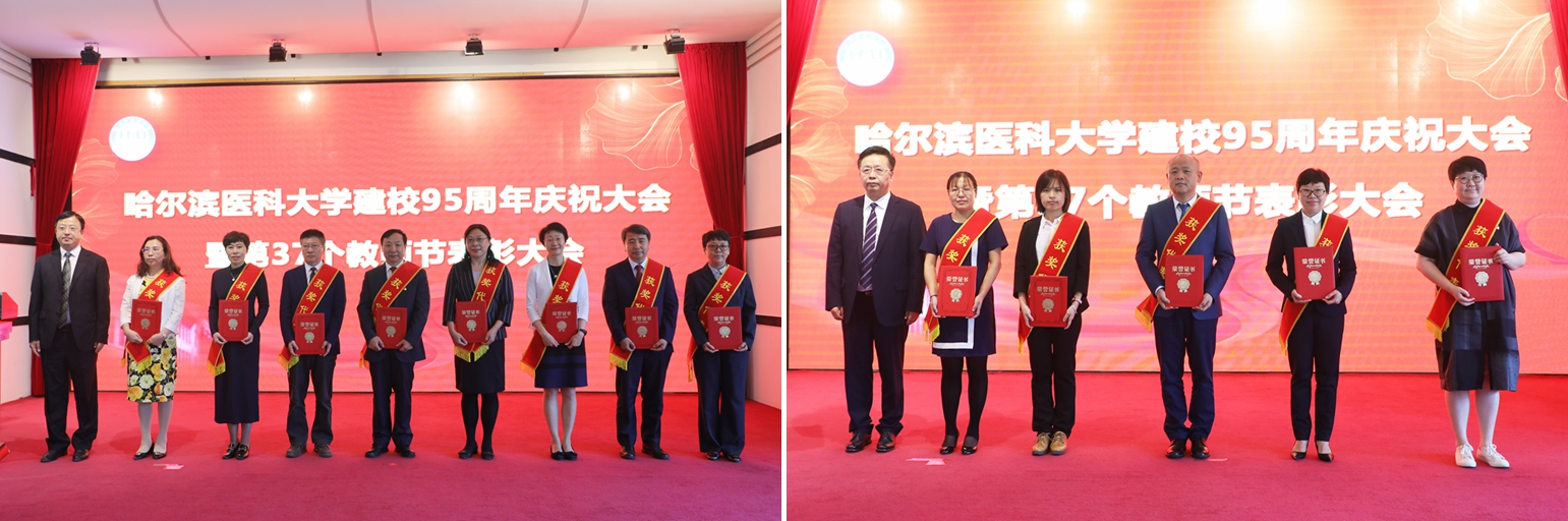 两大血脉映立德初心,圆梦百年育天下英才!在中国共产党成立100周年的重要时刻,在第37个教师节到来之际,哈尔滨医科大学迎来了建校95周年华诞。9月8日,学校隆重举行建校95周年庆祝大会暨第37个教师节表彰大会。学校领导班子成员、教学督导代表、博导代表、教学成就奖代表、各项获奖代表、各院系部办处代表、学生代表等参加会议,其他师生通过线上直播平台同步收看大会盛况。大会由校党委副书记袁重胜主持。