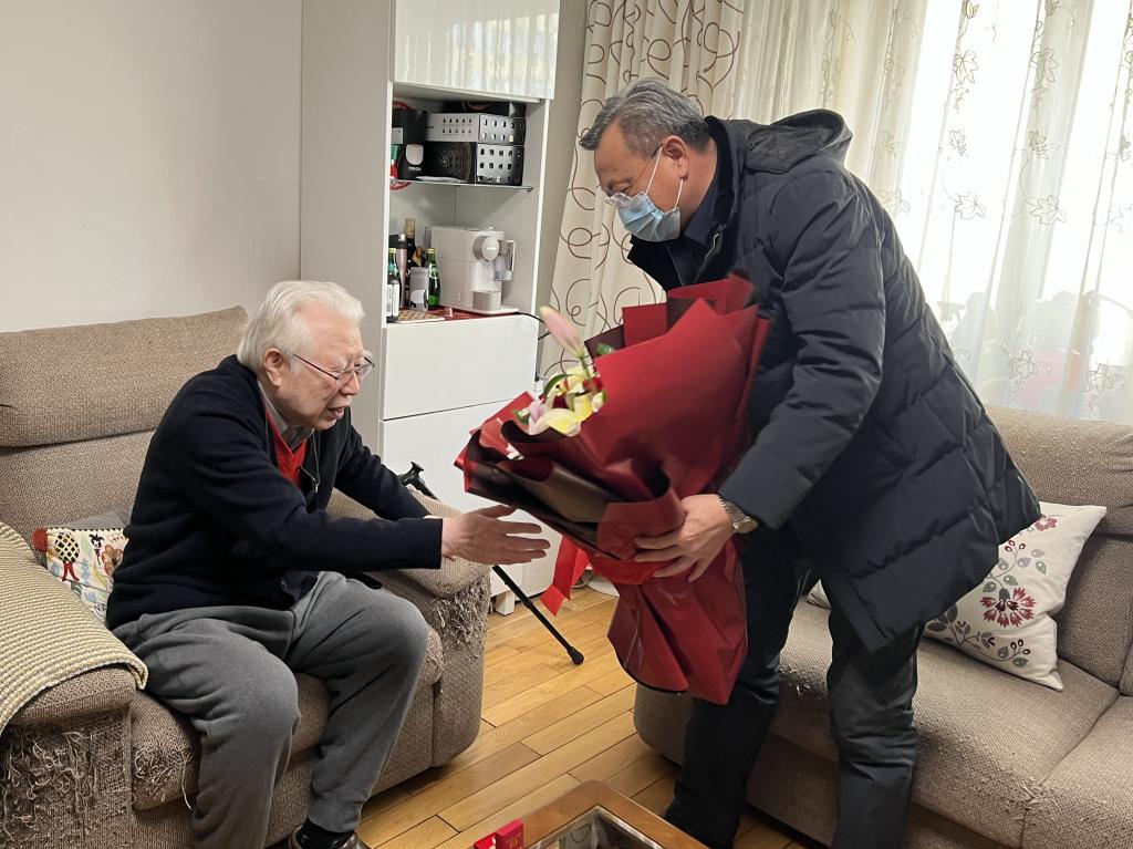 张斌依次探望了徐屯老先生、祖铁銮老先生,为他们献花,并亲切地与他们话家常,询问老先生的身体状况,了解他们的需求。张斌感慨地说,哈医大从中国工农红军军医学校来,有着红医的血脉和红色的基因,老先生们是见证者更是传承者,你们将“政治坚定、技术优良”“救死扶伤,实行革命的人道主义”的红医精神带到了哈医大,你们在哈医大学习、工作,将青春奉献给黑土地,将毕生所学留在哈医大,是真正的“大先生”“大家”,正因为先生们的坚守与奋斗,才有了哈医大的今天。哈医大不会忘记先生们的贡献,哈医大人会始终以你们为榜样,将红色基因传承好,砥砺前行不负众望。