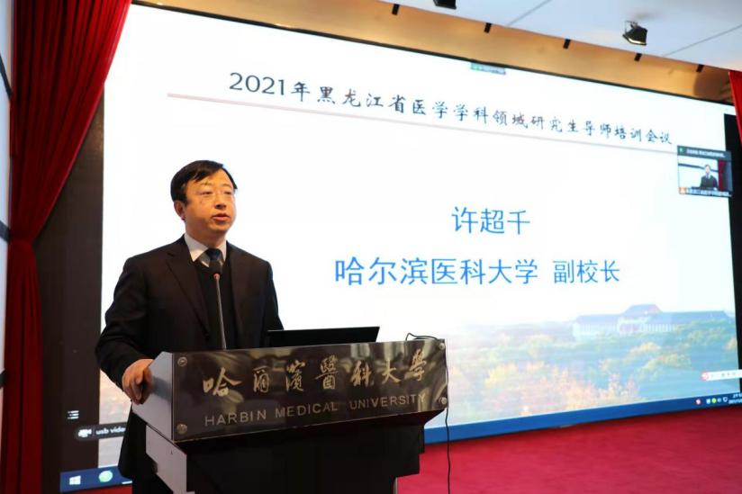 许超千在开幕致辞中介绍了哈尔滨医科大学研究生教育工作近年来的成绩和发展规划,并代表学校感谢黑龙江省学位委员会、黑龙江省教育厅及兄弟院校对我校学位与研究生教育工作的大力支持和帮助,对全省医学学科领域研究生导师参加本次培训表示欢迎。许超千指出,研究生教育是国民教育的重要组成部分,是教育强国建设的引擎,导师是研究生培养的第一责任人,肩负着培养高层次创新人才的崇高使命,承担着对研究生培养的全方位重要职责。哈尔滨医科大学将进一步加强导师队伍建设,深化认识、提高站位、明确任务,持续推进我校研究生教育综合改革向纵深发展,为研究生导师提供成长环境和发展平台。许超千表示,希望通过本次培训使研究生导师交流和学习优秀的指导经验,了解研究生教育最新的政策和制度安排,共享优质教育资源,共同提升研究生培养能力和水平,为龙江的发展贡献力量。