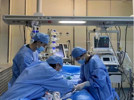 连夜从家赶到医院的哈医大二院重症医学科ECMO小组成员郑俊波副主任医师、贾柳副主任医师迅速开展操作。贾柳介绍,“对于暴发性心肌炎合并心源性休克的患者,我们通常选择VA-ECMO模式,除了需要进行股动脉置管、股静脉置管外,为保证下肢供血防止缺血坏死还需要进行远端灌注管置入。儿童的血管本身就比成人纤细,再加上这个孩子体态偏胖,给操作过程带来不少困难。”幸运的是,经过一番仔细探查和精细操作,ECMO小组成员成功完成股动静脉及股动脉远端灌注管的置管过程,使VA-ECMO得以迅速顺利运转。
