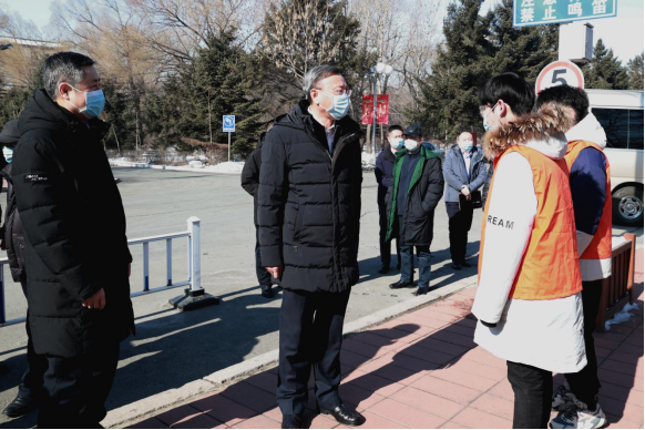 党委书记张斌,党委副书记袁重胜,纪委书记韩延平,党委常委、宣传部部长东梅实地检查了学校南门、学生宿舍、快递驿站、学生食堂的疫情防控情况,并慰问工作人员和学生志愿者。张斌强调要在细节处体现学校管理的效率与温度,让学生在管理中体会到学校对他们的关心与关爱;要严格按照学校开学工作整体部署,严把防疫关,落实各项工作职责,确保学生安全返校。