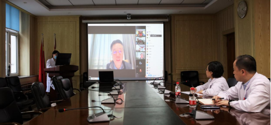 在3月11日的新冠肺炎疫情防控工作会议上,正在吉林省参加疫情防控救治工作的于凯江院长参加线上会议,为全院医护人员介绍当前疫情防控形势。
