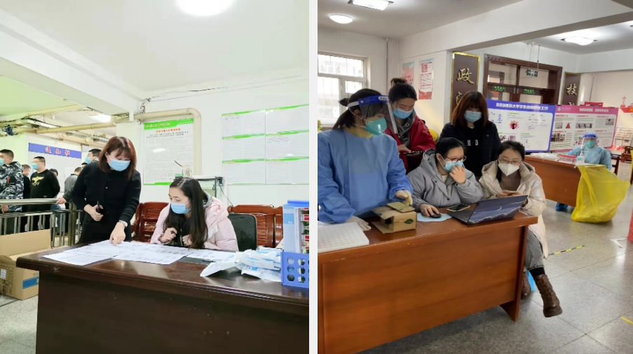 是她们一次一次按照防疫要求组织学生开展核酸检测,落实政策,守护平安
