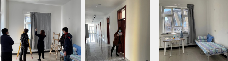 学生处公寓管理中心主任王爽带领工作人员为隔离寝室安装必要设备并逐一检查核对