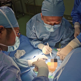 哈医大二院小儿外科主任李昭铸教授(右)和副主任崔清波教授(左)为新生儿进行手术