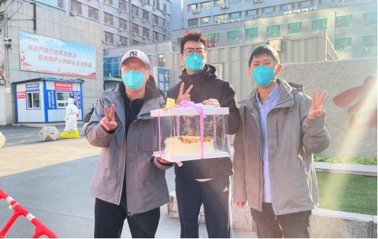 “祝你生日快乐!祝你生日快乐!”现场,医疗队员们突然唱起了生日歌,并捧出了一个小蛋糕,原来今天是第二批支援吉林重症医疗队领队、重症医学科副主任费东生的生日。