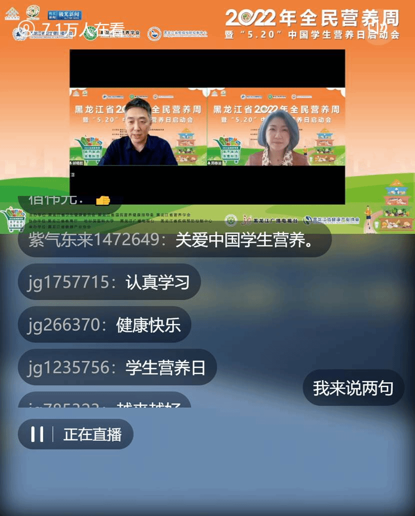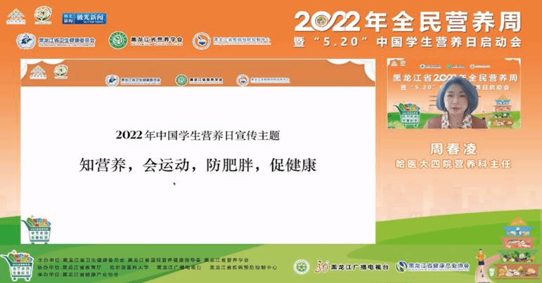 5月15日上午9时20分,黑龙江省2022年全民营养周暨“5·20”中国学生营养日启动会在极光leyu·乐鱼(中国)体育官方网站“健康龙江直播室”线上举行。