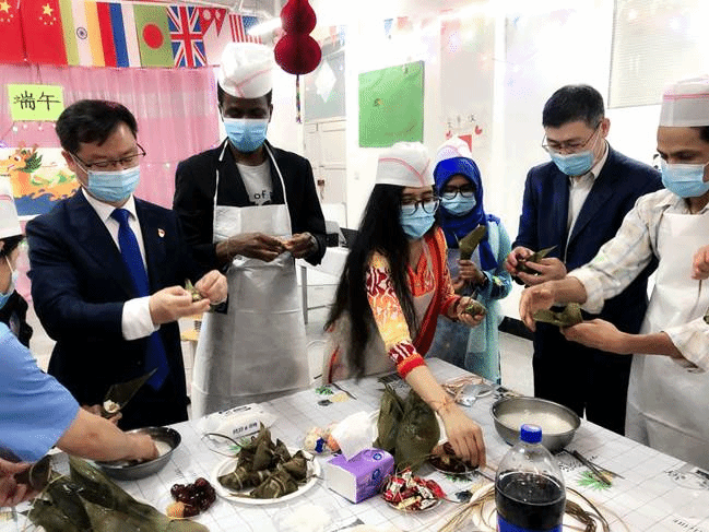 周钦看望留学生及国际教育学院组织的包粽子活动,不仅让同学们感受到了学校的温暖,也丰富了同学们疫情防控常态化下的校园生活,增进了留学生对中国传统文化的体验和理解。