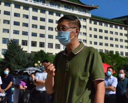 在出征仪式上,王永晨代表哈医大二院党委对大家援助西藏日喀则抗疫工作表示坚决支持,他表示,援助西藏抗疫是西藏人民的需求,更是党的要求!医疗队成立了临时党支部,要充分发挥战斗堡垒作用,党员发挥先锋模范作用,希望全体队员完全团结在党支部的周围,把每一项工作做好。他对队员们寄予厚望:“各位医疗队员代表了哈医大二院、代表着哈尔滨医科大学,更代表黑龙江省3100万人民对西藏人民的支持。希望大家在保证身体健康的情况下,做好每项抗疫任务,期待你们胜利凯旋归来!”