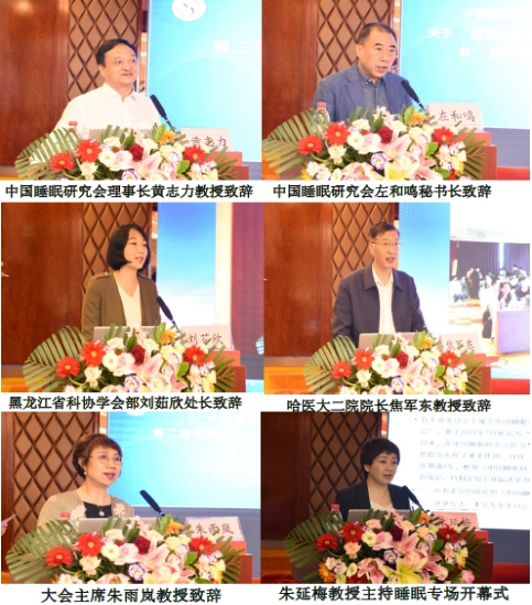 中国工程院院士、中俄医科大学联盟中方主席杨宝峰院士及俄罗斯巴什基尔国立医科大学L. Akhmadeeva教授,为开幕式致辞,大会下设睡眠及抗癫痫两个分会场,在睡眠专场学术会议开幕式上,中国睡眠研究会理事长黄志力教授,黑龙江省科协学会部刘茹欣处长,哈医大二院院长焦军东教授,大会主席哈尔滨医科大学附属第二医院朱雨岚教授为大会致辞。27日癫痫专场学术会议开幕式上,中国抗癫痫协会会长洪震教授、哈尔滨医科大学附属第二医院副院长贾海波教授、哈尔滨医科大学附属第二医院朱雨岚教授为开幕式致辞。