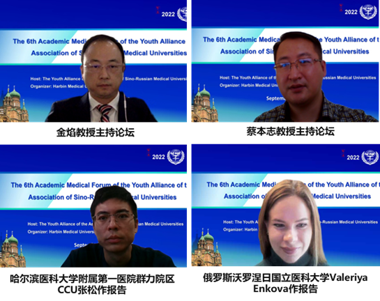 汇聚中俄优秀青年学者,创造医学合作新机遇。9月2日,由中俄医科大学联盟青年联盟主办的“第六届中俄医科大学联盟青年联盟医学论坛”以线上形式召开。本次论坛汇聚了来自中俄两国的优秀青年医学专家,围绕当前国际医学前沿热点展开深入交流。中俄医科大学联盟青年联盟中方主席、哈尔滨医科大学副校长许超千教授参会并致辞,我校基础医学院党委书记金焰教授和附属第二医院药学部主任蔡本志教授主持论坛。