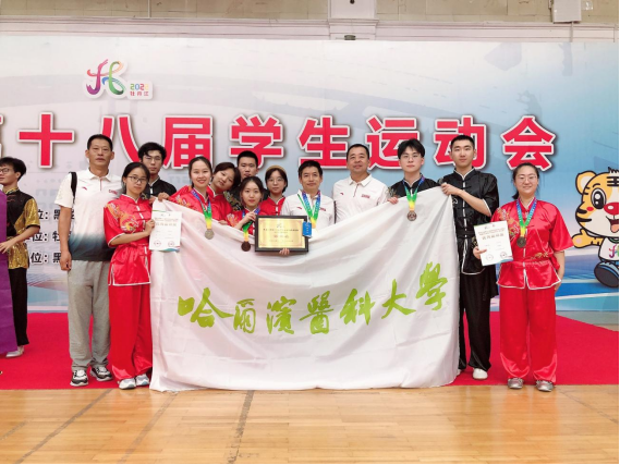 学校武术队在赵会斌教练的指导下,取得了1金、2银、2铜、第四名2个、第六名3个、第七名3个以及团体总分第六名的好成绩。李梦玥(2022级儿少卫生与妇幼保健学专业,博士研究生)获得女子甲组刀术冠军、女子南拳亚军及四类拳季军,杨虹(2018级基础医学专业,“5+2”本硕连续培养)获得女子软器械亚军,李佳鹏(2017级临床医学专业,“5+3”一体化)获得太极拳季军,李梦玥、王欣怡(2020级生物信息学专业)2人获得“优秀运动员”称号,赵会斌老师获得“优秀教练员”称号。