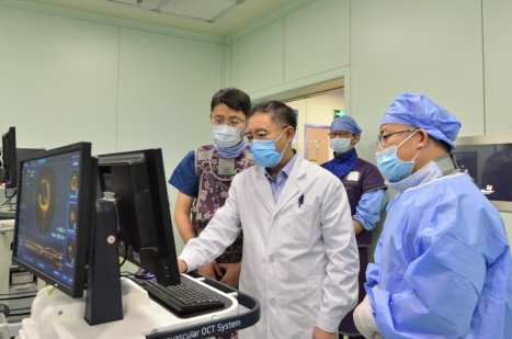 于波表示,此次手术采用的升级创新型OCT主要有三大突出特点,第一点是超长回撤,既往无法通过一次回撤看清整个血管全貌,此次新型导管在2.5秒内即可完成90mm血管回撤,轻松应对超长病变,有效减少回撤次数,提高手术效率,同时也减少了造影剂的用量,更大程度保证患者的安全;第二点是在实际应用中发现,由于该系统采用了独特的转码专利技术,无论是轴向扫描速度,还是光学灵敏度,都达到行业领先水平,成像更为清晰,实际临床使用中更易辨认病变信息;第三点是成像稳定,由于在导管上运用了“光胶囊”专利技术,使导管更容易推送至病变处,成像更加稳定。