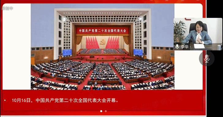 会上,李华以图文并茂的方式,与母校师生共同回顾了党的二十大盛况,汇报了个人履职情况和参会感受,分享自己的所见所闻、所思所感。她用朴实无华的语言和鲜活生动的事例,向母校师生传达了党的二十大精神,让师生备受鼓舞。