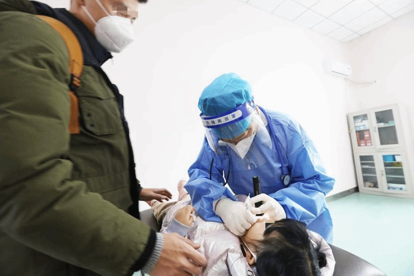 哈医大六院江南院区发热门诊护士为患者进行抗原检测