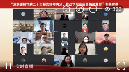 高彦辉以《深刻理解党的二十大报告精神内涵,推动学院高质量快速发展》为题,从解读报告总体构架、关键词梳理、重点信息强调、结合工作抓落实四个方面对二十大精神做了系统宣讲,并对全院师生结合工作实际,学习贯彻党的二十大精神提出了要求。