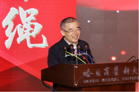 先进班集体代表2021级临床医学专业5+3一体化3班表演的班级故事舞台剧,引起师生共鸣。同学们团结友爱,合作共赢,以昂扬的精神,绘就着莘莘学子的神圣使命。在民族复兴、龙江振兴和哈医大发展的时代背景下,同学们将小我融入祖国和人民的大我之中,争当信念坚定的追梦人,争做奉献国家的生力军。