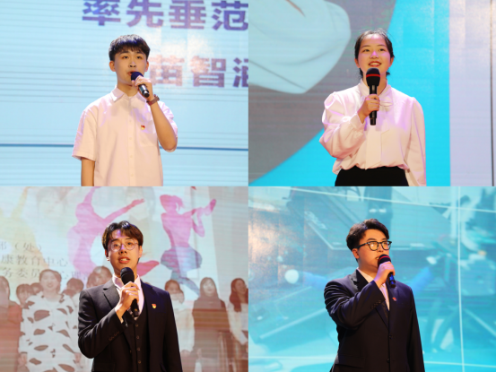 第九届校园十佳之星代表进行了风采展示。率先垂范之星苗智涵用自身的学习交流经历,展示担当有为、意气风发的青衿之志;科技创新之星刘志新将数十项国家级省级奖项、多项专利和软件研发著作权应用于实际,成为发明创造的青年先锋;艺苑百花之星盛可意用天赋与热情演绎文化传承,让艺术缤纷洋溢在校园每个角落;拓展实践之星刘双伊以丰富阅历锻炼自我,身体力行传递善与爱,让青春在社会大舞台充分展现。他们的成长奋斗是把自己融入时代洪流,努力成为担当民族复兴大任的时代新人。同时,激励哈医学子做有理想、敢担当、能吃苦、肯奋斗的新时代好青年。