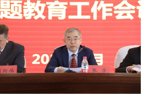 张学代表学校党委对开展主题教育提出四点要求。一是深刻认识开展主题教育的重大意义,深刻感悟党的创新理论的思想伟力、实践要求、真理力量,以对党的绝对忠诚、对党的事业高度负责的鲜明态度,切实增强开展主题教育的政治责任感和历史使命感。二是牢牢把握“学思想、强党性、重实践、建新功”主题教育总要求,做到凝心铸魂筑牢根本、锤炼品格强化忠诚、实干担当促进发展、践行宗旨为民造福、廉洁奉公树立新风。三是抓实落靠主题教育重点措施,以副处级以上领导干部为重点,不划阶段、不分环节,把主题教育各项工作贯通起来,把深化能力作风建设“工作落实年”活动融贯其中,做到统筹协调、一体推进。四是切实加强对主题教育的组织领导,主要负责同志要履行好第一责任人责任,亲自谋划、靠前指挥,坚决防止形式主义、官僚主义,确保各项重点措施落地落实、见行见效。张学指出,此次主题教育时间紧、任务重、要求高,全校各级党组织和广大党员、干部要把主题教育作为必须坚决完成好的重大政治任务,精心组织实施,全面抓好落实,主动接受督导指导,以更饱满的工作热情、更良好的精神状态、更优异的工作业绩,把“规定动作”做到位,把“自选动作”做出彩,切实以主题教育的实际成效推动学校各项事业发展迈上新台阶。
