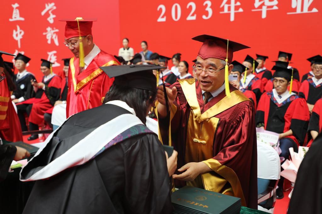 挺膺担当就要练就过硬本领,做仁心仁术的从业者。希望同学们传承好“崇生尚医、传承探行”的大学精神,在未来工作中恪守医德医风医道,修医德、行仁术,怀救苦之心、做苍生大医,把勤学习善思考作为一种生活方式,不断提升自身的专业素质与能力,努力为人民群众提供更加优质高效的健康服务。