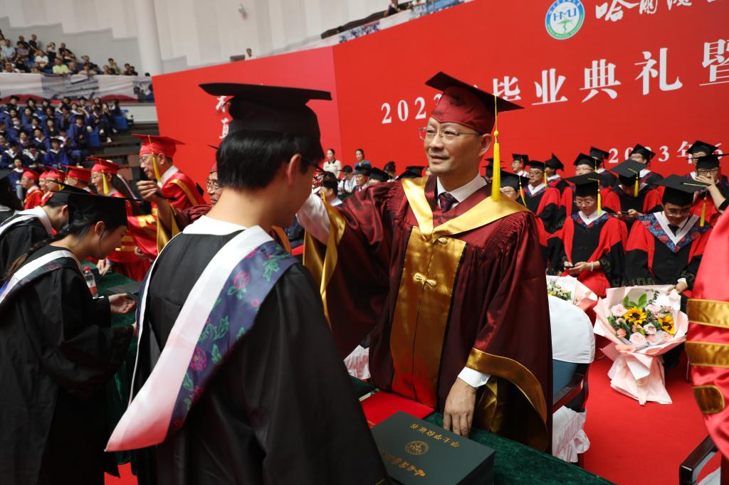 季勇指出,同学们承载着“健康所系,性命相托”的誓言,承载着“木直中绳,博学载医”的校训,承载着一代代哈医人的使命和荣光,要传承好哈医大科学基因、红色基因、开放基因,书写好哈医大青年建功立业的新时代答卷,以优异成绩迎接建校100周年。期待着三年后百年校庆之时,我们再相聚。祝同学们毕业快乐,前程似锦。