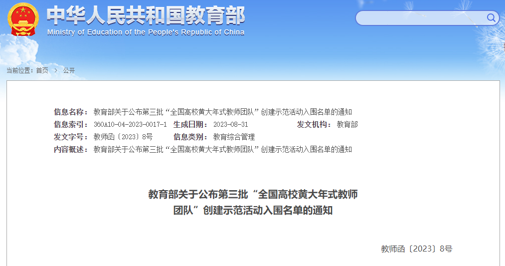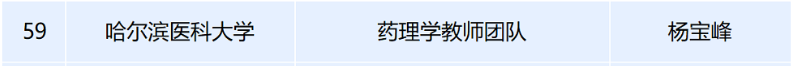 8月31日,教育部发布《关于公布第三批“全国高校黄大年式教师团队”创建示范活动入围名单的通知》,杨宝峰院士负责的哈尔滨医科大学药理学教师团队入选第三批“全国高校黄大年式教师团队”。