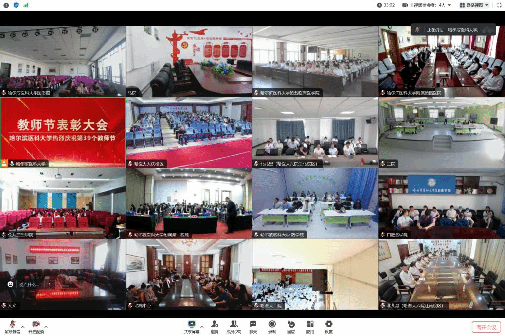 张学代表学校向广大教师提几点希望:第一,要坚定理想信念,做指引学生爱党爱国的信仰之师。打造胸怀“国之大者”的医教研人才队伍,赓续红色基因,夯实信仰力量,传承发扬好哈尔滨医科大学的红医精神、伍连德精神、于维汉精神,讲好哈尔滨医科大学的“红色故事”;第二,要涵养道德情操,做塑造学生高尚人格的品行之师。希望大家坚持以德立身、以德立学、以德施教,不断增强“言为士则、行为世范”的自觉,努力做到“医者有仁心,师者有操守,学者有风骨”,持续提高道德修养和人格品质,以模范行为引导学生把握好人生方向、扣好人生的第一粒扣子,努力做学生“为学、为事、为人”的大先生;第三,要丰富扎实学识,做培养学生学习创新能力的学问之师。希望大家秉持终身学习的理念,与时俱进、守正创新,加快知识更新、优化知识结构,积极吸纳先进的教育理念和前沿的科研成果,主动采用科学高效的教学方法,引导学生提升学习能力、增强创新思维,更好满足国家对高层次优秀人才的需求和期待;第四,要胸怀一颗爱心,做严慈相济的仁爱之师。希望大家坚持有教无类,因材施教,把教书育人作为“仁而爱人”的事业,用心、用情、用爱教育学生,尊重、理解、宽容学生,善于发现学生的闪光点,公平公正对待每一名学生,做学生的良师益友,让学生“亲其师、信其道”,让所有进入哈医大的学生都能成长为国家栋梁之才。