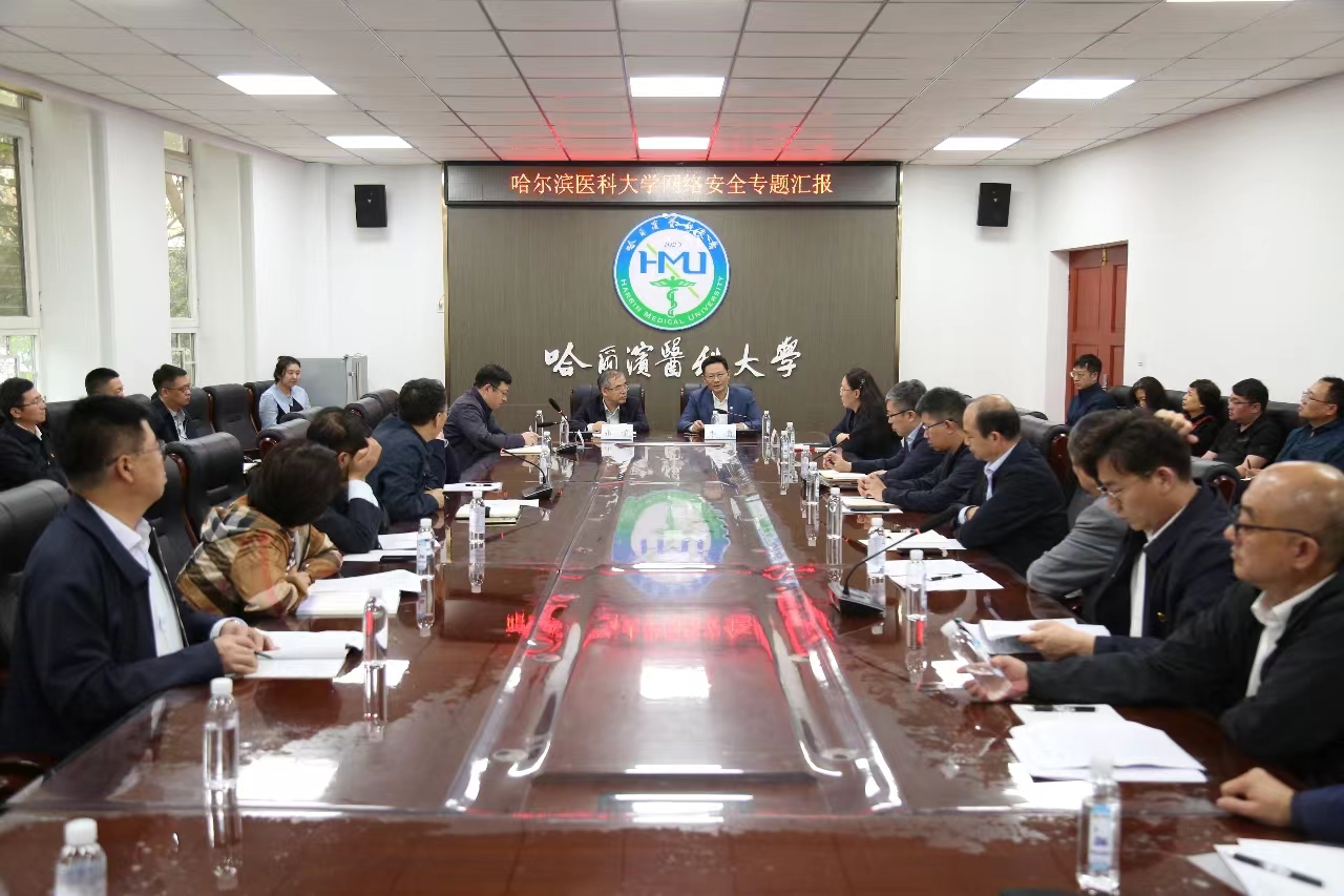 学校网络安全和信息化工作领导小组办公室副主任、现代教育技术中心主任朴杰汇报网络安全当前形势、学校网络安全整体情况和下一步工作计划。大庆校区校长、各附属医院党委书记结合本单位实际汇报网络安全工作情况及下一步计划。