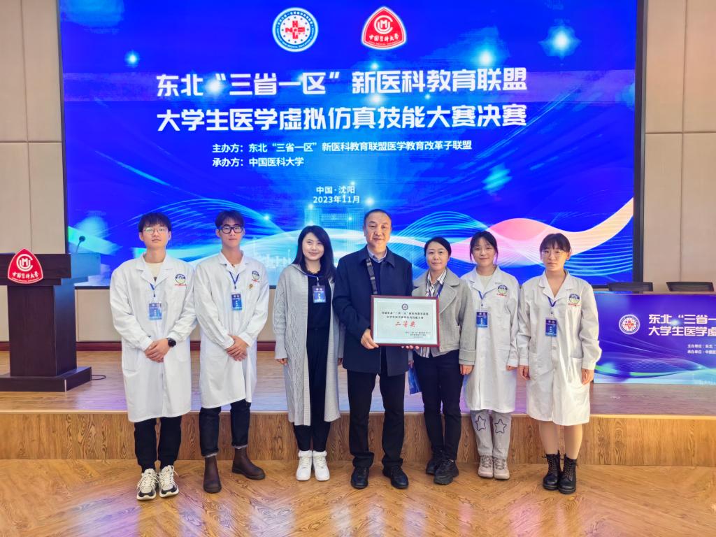 11月3日,由东北“三省一区”新医科教育联盟医学教育改革子联盟主办的大学生医学虚拟仿真技能大赛决赛在中国医科大学举办,第四临床医学院2019级临床医学专业涂坤锋、葛妍、李月恒、王菲4名同学组成的参赛队伍获得二等奖。教务处副处长郭劲松受邀担任大赛评委。
