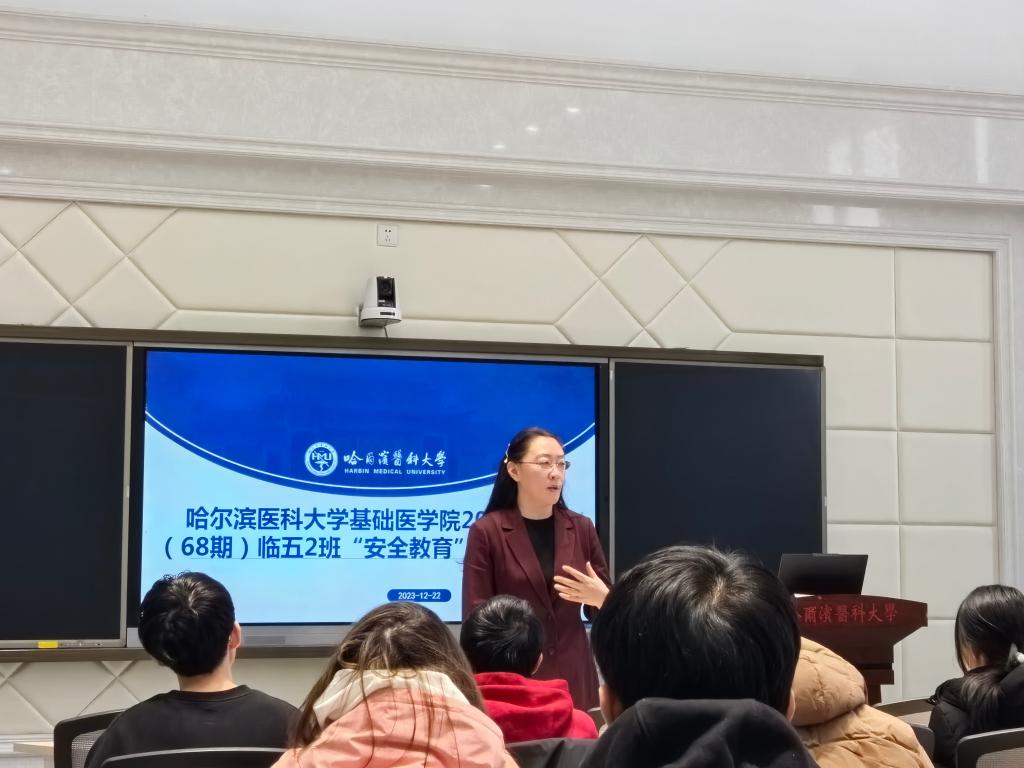 22日,在所联系的基础医学院2023级临床2班主题班会上,东梅表示学校非常重视学生的发展和成长,始终不断努力为同学们创造良好的学习和生活环境,助力同学们成长成才。希望2023级的同学们尽快转变角色,尽早适应大学学习方式、生活环境的变化,学会自我教育、自我管理,保持积极向上的心态和良好的行为习惯。要做自身安全的第一责任人,在头脑中牢固树立安全意识。要乐观面对期末考试,保持适度压力,积极备考,祝愿同学们在期末取得优异成绩。