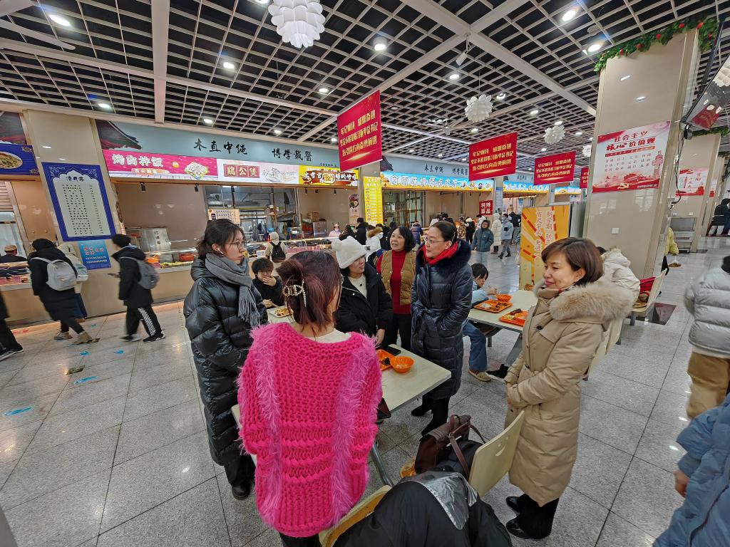 21日,在学生食堂,东梅与同学亲切交流,了解学生家乡在哪里,考试准备情况如何,对学习生活还有哪些需求。叮嘱同学们天气寒冷、临近期末要加强营养,合理饮食。在图书馆,东梅详细询问学生期末和考研阶段的学习情况,了解学生心理状况和学习中的困难和需求,鼓励同学们认真备考、劳逸结合,以积极乐观的心态迎接考试。