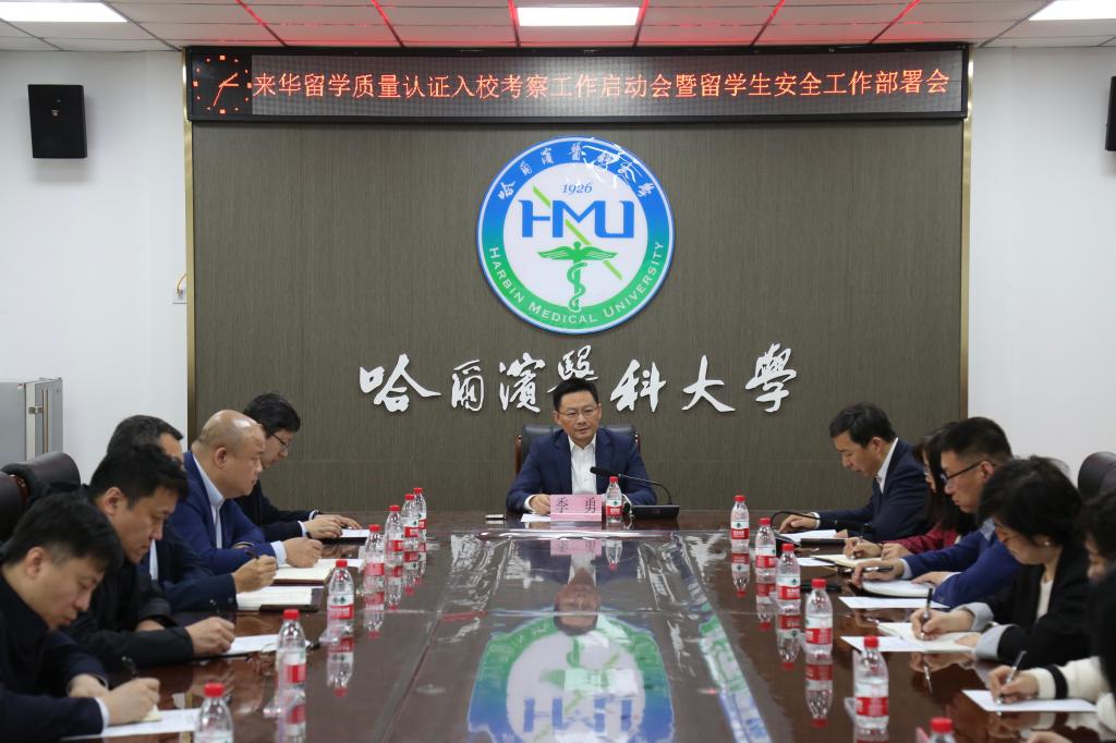 校长季勇对教育部来华留学质量认证工作和2024年留学生安全管理工作,提出五点要求:一是提高政治站位,充分认识质量认证的重要性和深远意义。要将质量认证工作作为改进工作的良好契机和突破点,真正做到以评促建、以评促改、评建结合、提高质量。二是紧扣认证要求,保质保量按时完成认证材料和认证程序的准备工作。对标准内涵的理解,要做到结合来华留学人才培养体系、结合来华留学人才培养全过程、结合来华留学人才培养效果。三是加强组织领导,确保质量认证各项工作落到实处。按照学校既定的时间节点,扎实推进认证的各项工作,提供的资料要认真严谨,充分体现本单位的办学特点和工作水平,保证工作质量。四是强化宣传引导,凝聚全校师生迎接质量认证的向心力。要全方位总结展示我校来华留学教育工作的经验和成绩,要在突出黑龙江地缘特色和哈尔滨医科大学教学特色方面下功夫,要在诠释学校高质量办学特色、优势医疗服务、高水平科研成效方面做文章,要在创新培养知华、友华、爱华等留学生培养细节方面求突破。五是实施细节管理,多措并举开展安全风险排查工作。加强留学生日常管理和学业规范。