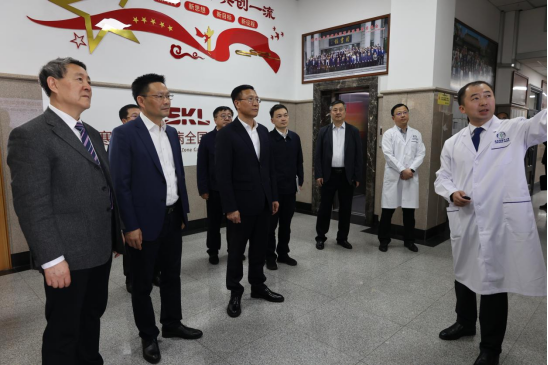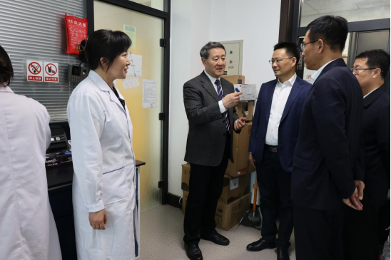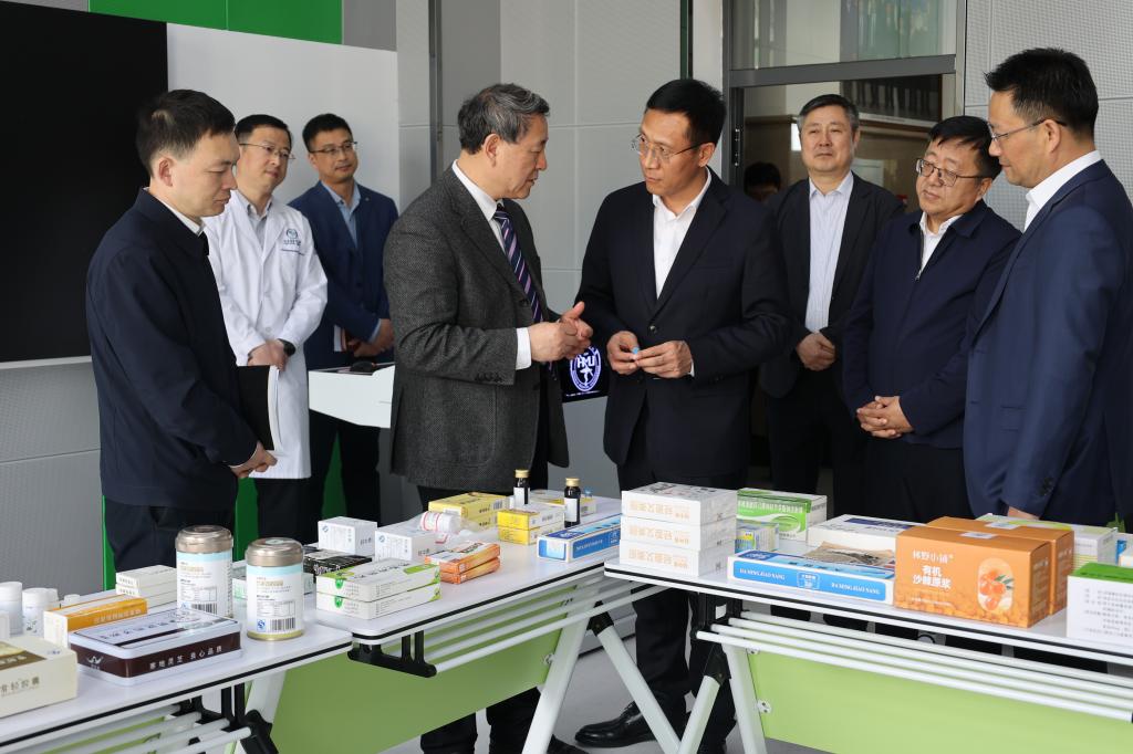 张起翔来到药学院,分别听取中国工程院院士杨宝峰、药学院院长张勇对寒地心血管病全国重点实验室建设情况和药物研发、科研成果转化情况的介绍,了解中俄医科大学联盟情况,调研药学一流学科建设情况。
