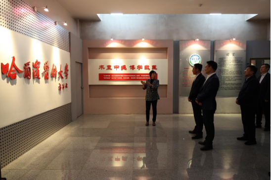 张起翔参观校史馆,图书馆馆长尹梅介绍我校历史沿革、办学特色和校友风采。