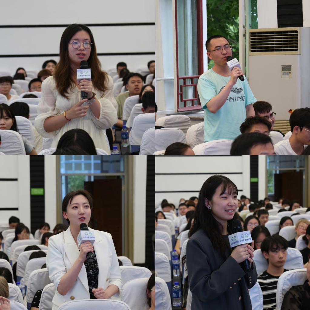 “师者,所以传道授业解惑也”,在答疑环节中,同学们积极踊跃,与专家热情互动。“开朗的人也会患抑郁症吗?”“迷茫的大学生如何找到目标和方向?”“如何识别精神障碍?”……王刚教授和钱明教授围绕专业科普、经验分享和自身感悟,耐心细致的回答了师生的实际问题。现场求知不断、气氛热烈。