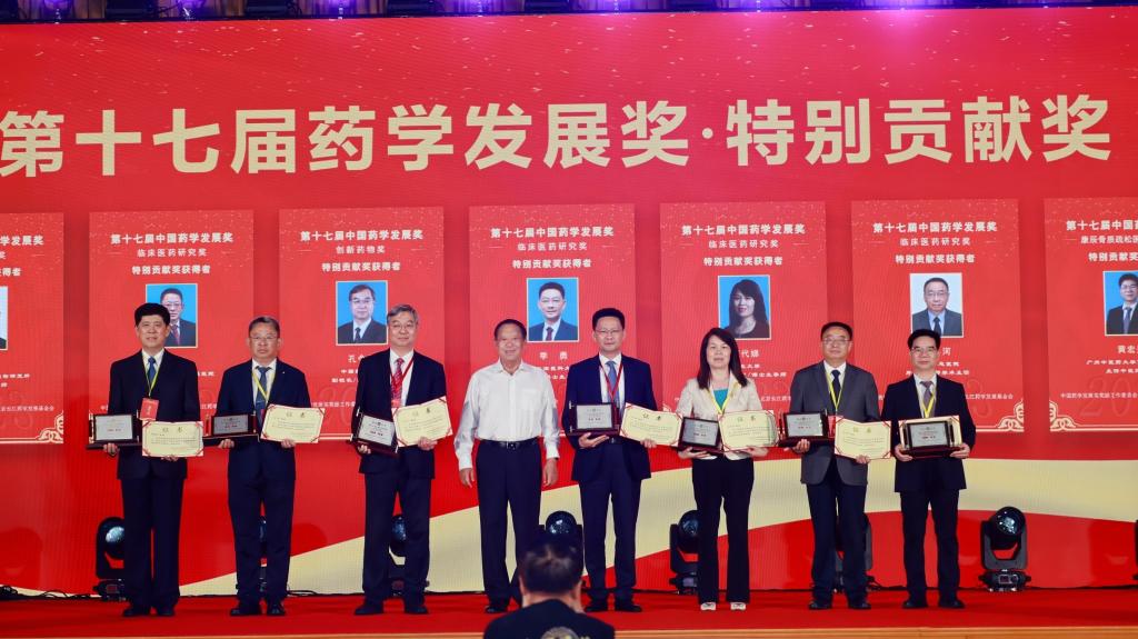 “中国药学发展奖”是国家科技部首批批准设立的奖励科技人物的全国性医药学奖项,旨在对临床医药研究领域做出突出贡献或取得重大科技成果的临床医药研究工作者进行表彰和奖励,激励创新,奖励人才,发展医药,促进人民健康水平的提高,造福人民。“第十七届中国药学发展奖”共评出特别贡献奖7人、突出成就奖31人、杰出青年学者奖16人。