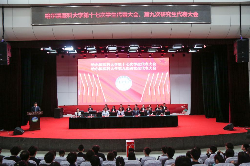 把握时代精神,勇担时代使命,汇聚青春力量,成就青春梦想。我校第十七次学生代表大会、第九次研究生代表大会的召开,是全校青年学生政治生活中的一件大事,是展现全校各学生组织先锋模范作用、团结凝聚广大青年学生“听党话、跟党走”,以高度的热情参与学校治理与发展的一次重要会议。哈尔滨医科大学学生会、研究生会将牢记习近平总书记和学校党委对学生会工作的重要指示,深化改革创新,担当桥梁纽带,服务同学成长,自觉深入贯彻“全心全意为同学服务”的宗旨,不断改进和加强自身建设,团结带领广大同学为我校“双一流”和百年医学强校建设、为龙江全面振兴全方位振兴、为建设社会主义现代化强国、实现中华民族伟大复兴的中国梦贡献属于哈医人的青春力量!