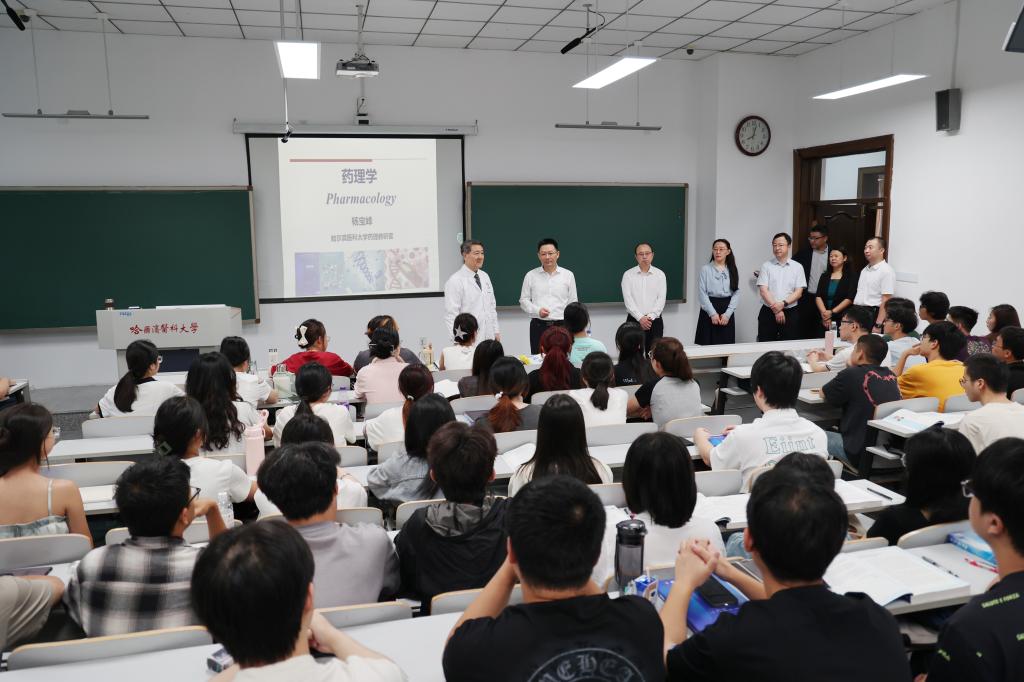 在杨宝峰院士的课堂上,季勇感谢杨院士始终坚守在教学和科研一线,多年来坚持为本科生讲授《药理学》开学第一课。杨院士作为《药理学》教材的主编,致力于为学生提供高质量教材,对学科发展起到关键作用,用行动践行师者传道授业解惑的职责与使命。