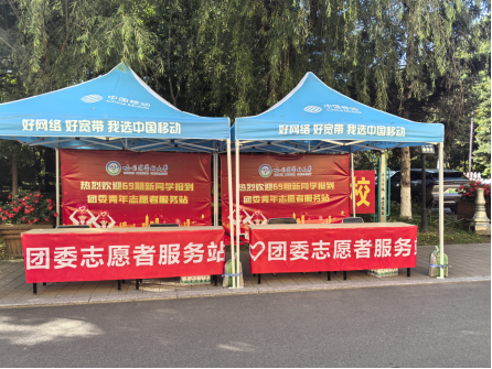 团委志愿者发光发热暖心服务:团委在校园内设置8个迎新志愿者服务站;招募站点固定志愿者和主干道流动志愿者共计130人,并进行岗前培训;为新生配备迎新物资包,内含笔、校园地图、学生组织宣传页;学生组织的8台拉车统一放置在驿站旁边的服务站供新生使用。